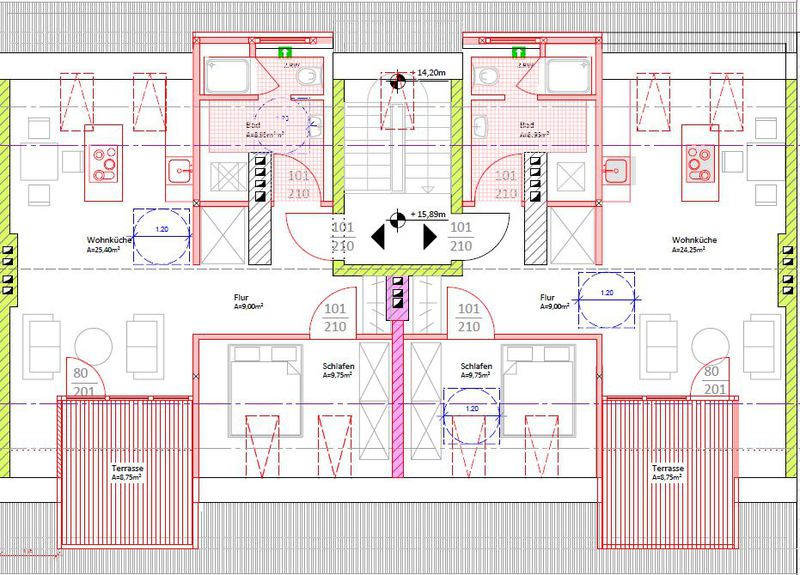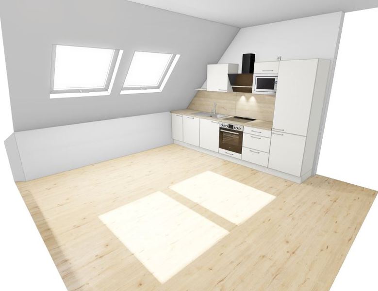 3 Dachgeschosswohnungen mit Einbauküchen, sichtbaren Dachbalken und Loggien
